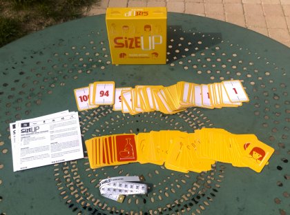 Attention ! On va prendre des mesures ! SizeUp propose d'estimer puis de vérifier à l'aide d'un mètre-ruban diverses parties du corps d'un des participants (on attend la version adulte Le problème, c'est que l'idée n'est pas nouvelle et qu'elle avait déjà été mise en œuvre de manière bien plus amusante avec Estiméo.