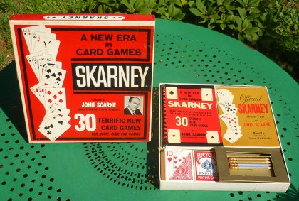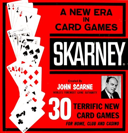 Comment un collectionneur pourrait-il se passer d'un jeu inventé par le plus grand expert mondial ? Parmi les quelques livres qu'il a édités, on peut en citer un certainement remarquable : The Woman’s Guide to Gambling (2), où il explique aux femmes comment gagner à la roulette et au loto. Skarney est une sorte de Rami, avec un peu de canasta, de gin-rummy et d'autres apports. L'intérêt est essentiellement encyclopédique. Vous pouvez m'offrir les titres qui manquent à ma collection (et donc à ma culture) :