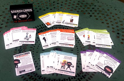 L'idée de Sneaky Cards est généreuse : vous devez vous débarrasser de vos cartes en les utilisant lors d'interactions fortes avec des inconnus à qui vous les transmettez, en espérant qu'ils joueront le jeu et continueront à faire circuler la carte reçue. Un exemple : « Ramassez plus de 10 déchets dans la nature (en forêt, sur la plage…) et mettez-les à la poubelle. Passez cette carte à quelqu'un croisé pendant la mission. » Sneaky Cards pose un gros problème à un collectionneur de jeux comme moi. Si je veux y jouer, il disparaît de ma collection puisque le principe en est d'en disperser les cartes à travers le monde. La solution est simple : il me suffit d'en acquérir un deuxième exemplaire pour mon usage personnel afin de conserver la première boîte dans la collection.