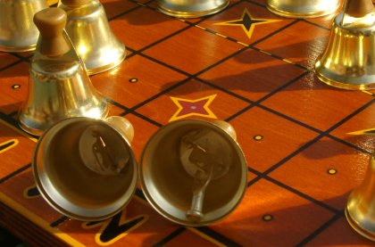 Chaque joueur dispose de 12 clochettes disposées en début de partie au fond de son camp. L'un des joueurs possède des clochettes avec battants qui sonnent normalement, tandis que son adversaire possède des sonnettes sans battants. Et comme il n'est possible de déplacer que ses propres clochettes, on doit secouer celle choisie avant de la jouer. Si le son entendu est inadéquat, on doit alors la reposer et on perd un tour.