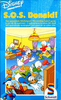 L'idée de S.O.S. Donald est simple et sympathique : être le premier à sortir de la maison les deux membres de la famille Duck dont on a la charge. Une inondation étant intervenue, on se déplace en marchant sur les meubles. Chacun s'occupe donc de deux pions. Mais en même temps, on est parfois contraint d'avantager un peu les autres. Un pion avance simplement vers le prochain meuble libre, éventuellement en sautant un ou plusieurs meubles occupés. Pour déterminer quel pion avance, on se fie à la couleur du dé :