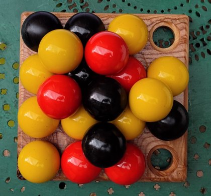 - placer 9 de ses billes visibles sur la pyramide, ou