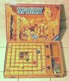 Le thème est toujours l'Égypte pharaonique, mais ici un plan de jeu original met en œuvre un mécanisme sympathique. Lorsque votre pion finit contre un mur avec un passage secret, il s'appuie contre celui-ci et le fait pivoter. Sous chaque sphinx se cache une couleur. Certaines cartes permettent de regarder sous l'un d'entre eux, d'autres cartes permettent de changer des sphinx de place. Pour gagner, il faut parvenir au centre et être capable de prédire la couleur des trois gardiens. NB : Sphinx est à ne pas confondre avec Sphinx, un jeu de déduction paru en 1987. |