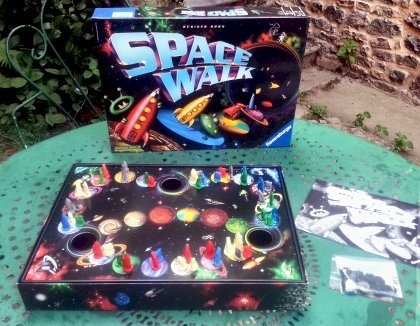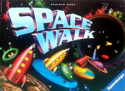 Le jeu consiste à promener des navires intergalactiques sans les faire tomber dans les trous noirs. Un mécanisme original est mis en œuvre : on prend tous les pions présents sur une case (à condition qu'au moins un nous appartienne) pour les distribuer sur les cases suivantes, comme à l'Awélé. Les plus gros vaisseaux doivent être joués en premier, les plus petits en dernier. S'il y a par exemple cinq vaisseaux sur une case, le plus gros, ou l'un des plus gros, sera déplacé une case plus loin ; le plus petit, ou l'un des plus petits, sera déplacé cinq cases plus loin ; les autres vaisseaux seront déplacés de deux, trois ou quatre cases. À vous de jouer habilement pour éviter que vos vaisseaux ne soient attirés par un trou noir, et pour pousser ceux de vos adversaires vers ces mêmes trous noirs. Le design du jeu est discutable, mais pas aussi laid que celui de Ramses II ou de Sphinx. Pourtant Tikal, sorti la même année, est quant à lui très beau. Allez comprendre… Ce design malheureux et l'importance excessive de la boîte, qui aurait pu être du format poche, empêchent Space Walk d'obtenir une meilleure note. 2014 : réédition chez Morapiaf/Gigamic