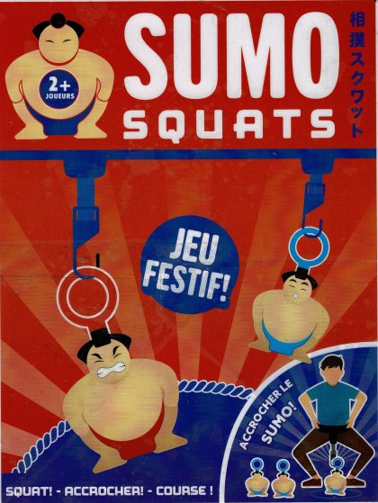 Inspiré de certains jeux de kermesse, Sumo Squats est un petit jeu d'adresse et de rapidité pour deux joueurs. Chacun accroche une ceinture autour de sa taille qui laisse pendre un cordon terminé par un crochet. Dix petits sumotoris en carton sont posés au sol, surmontés d'un anneau. Il va falloir, avant son adversaire, accrocher ces sumotoris en s'accroupissant habilement pour les déposer ensuite dans l'arène de sa couleur. Pendant ce temps, les autres convives se moquent des joueurs.