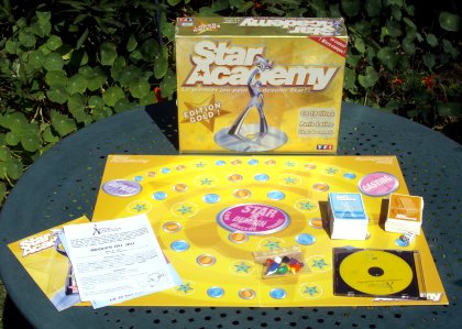 Au secours ! On essaye de me faire chanter ! Star Academy existe dans plusieurs versions, correspondant aux différentes saisons de l'émission éponyme. Celle présentée ici est l'édition « Gold ». |