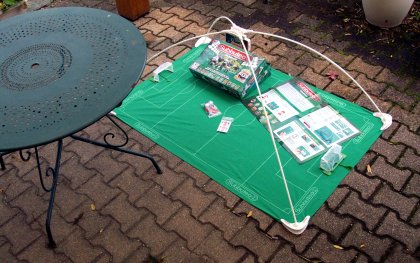Il existe une fédération française de football de table (et même deux, avec celle qui s'occupe de baby-foot). Vous pouvez rejoindre l'un des clubs pour pratiquer le jeu, après avoir consulté les 78 pages de la règle officielle ! Probablement la meilleure simulation de football sur tapis, et certainement la plus indémodable. 2006 : Subbuteo StadiumPour remédier au problème de tension du tapis, il existe deux méthodes. La première consiste à faire tendre en permanence le tapis par quatre amis consentants et serviables. La seconde, bien pratique quand vous ne disposez pas de tels amis dans votre entourage, consiste à équiper le terrain d'une armature comme pour une toile de tente. C'est la méthode choisie par Hasbro pour son édition Subbuteo Stadium.