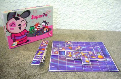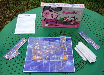 SuperPo - dans l’espace nous propose un concept vraiment original, ce qui est plutôt rare dans les jeux destinés aux jeunes enfants. L'idée est de placer des barrettes d'images sur les cases d'une grille en respectant deux contraintes : on doit superposer une image sur une déjà placée ; il ne faut pas sortir du cadre.