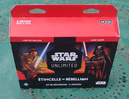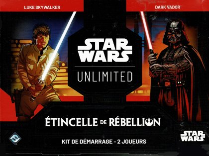 Que la Force soit avec vous Plongez au cœur d'une galaxie au potentiel illimité avec Star Wars - Unlimited - Étincelle de Rébellion, un jeu de cartes à collectionner rapide, dynamique et facile d'apprentissage. Vous affronterez votre adversaire au cours de batailles passionnantes à l'aide de nombreux personnages emblématiques de l'univers Star Wars. Protégez vos alliés avec Luke Skywalker ou passez à l'offensive avec Dark Vador ! Ce kit de démarrage pour deux joueurs vous propose tout ce dont vous avez besoin pour jouer et vous familiariser avec les règles, y compris deux decks complets, un livret de règles et les pions nécessaires à la partie. Sont également incluses 10 cartes exclusives différentes (chacune en nombre suffisant selon leur type) qui sont uniquement disponibles dans ce kit de démarrage !