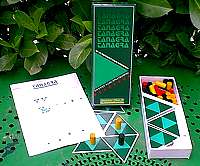 La petite boîte austère de Tanagra contient une création surprenante, dotée de plusieurs mécanismes inhabituels. On est d'abord surpris par le plan de jeu. Il est constitué par des triangles équilatéraux que posent tour à tour les joueurs sur la table. Chaque triangle doit toucher au moins un triangle déjà posé par un demi-côté. Le réseau obtenu est différent à chaque partie, et il va falloir l'analyser sérieusement si l'on veut avoir une chance de gagner. La prise est cependant contrainte par une règle essentielle : on ne peut prendre que les pions de son voisin de gauche. Lorsqu'on joue à deux, chacun dispose de deux types de pièces. Il existe alors un système de prise cyclique : chaque pièce ne peut prendre qu'un type de pièce adverse, et ne peut être prise que par l'autre type. Tout cela vous semble assez innovant ? Ce n'est pas fini : après avoir fait son déplacement et s'il se trouve maintenant un triangle vide de toute pièce, vous pouvez le laisser en place, le déplacer ailleurs (en respectant les conditions de pose) ou le retirer définitivement. Le but est de prendre tous les pions des autres joueurs ou de les isoler en les laissant seuls sur un triangle qui ne touche plus le reste du jeu. Tanagra avait été justement remarqué par le Jury de Boulogne-Billancourt en 1990, qui lui avait attribué le Gobelet d'Or 1989 — la récompense suprême, à l'époque, pour un nouveau jeu. Tanagra est livré avec la règle en quatre langues : français, anglais, allemand et breton ! Il faut dire que l'éditeur est une association de promotion de la langue bretonne qui diffuse des jeux, des vidéos et des livres. Keit Vimp Bev voudrait dire (d'après mes renseignements) « Tant que nous vivrons ». Longue vie, donc, à Tanagra ! Merci à Gwénaël Beuchet, qui m'a aimablement fait parvenir un exemplaire de Tanagra pour ma collection. |