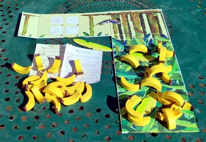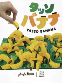 La règle de Tasso Banana est exactement la même que celle de Tasso. Seul le matériel change. D'abord, le plateau de jeu est rectangulaire, partie intégrante de la boîte. Le jeu fait ainsi partie de la gamme "L.Board" de l'éditeur Playte. Surtout, les pièces ont une forme de banane, ce qui permet de les poser soit à plat, soit en pont, soit en en équilibre instable. On pourrait croire que le jeu est encore plus intéressant mais c'est hélas l'inverse qui se produit. Les équilibres sont si instables qu'un simple éternuement dans une pièce voisine suffit à tout faire tomber. Il reste la solution d'imposer la pose à plat, ce qui revient à la règle originale avec deux avantages : des pièces un peu plus biscornues et un format de boîte qui tient dans une grande poche.