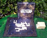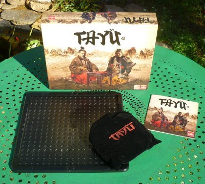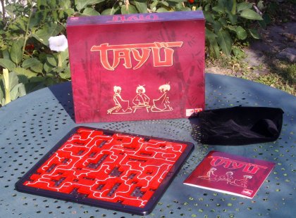 Bref un beau jeu, peut-être un peu cher, mais d'une qualité irréprochable, sauf si comme un ami orléanais, vous êtes tombé sur un exemplaire défectueux qui gâche le plaisir de jouer (message personnel : si tu le jettes, Mops, donne-moi l'adresse de ta poubelle). Les dominos sont de très belle qualité, et les illustrations de la boîte et du tablier du plus bel effet. Merci à Niek Neuwahl pour l'exemplaire gentiment envoyé à l'Escale à jeux. 2007 : Tayü enfin accessible à tousQuand on connaît la qualité d'un jeu comme Tayü, il est toujours décevant de constater qu'on ne peut le trouver que dans quelques boutiques. La nouvelle édition de Tayü par Goliath, un éditeur très bien implanté grâce à ses succès comme Triominos, sera l'occasion de permettre à Tayü de connaître enfin une consécration méritée.
