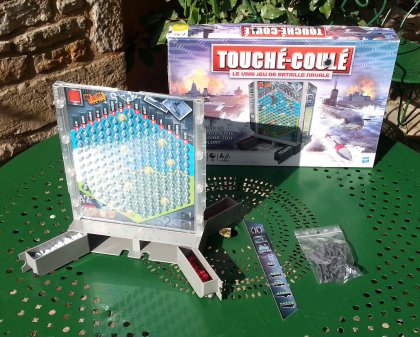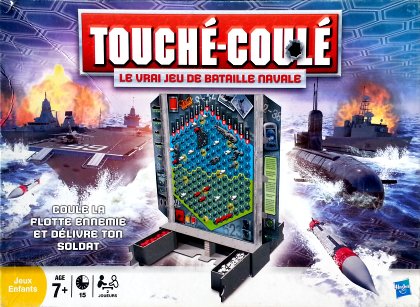 Touché-Coulé - Le Vrai Jeu de bataille navale est une légère évolution de la classique Bataille navale. La grille est hexagonale, ce qui ne change, en fait, pas grand chose. La principale différence est dans la fin de partie. Lorsque vous avez détruit tous les navires adverses, vous devez rechercher sur quelle île se trouve votre prisonnier. Il est donc possible que le joueur ayant détruit le premier les bateaux adverses ne gagne finalement pas la partie si son adversaire le rejoint rapidement et trouve son prisonnier avant lui.