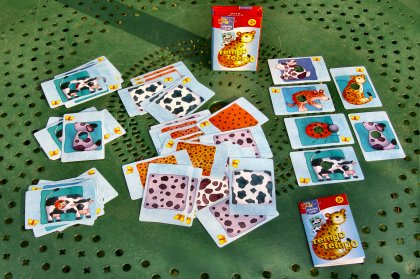 Pour jouer à Tempo Tempo, chaque joueur dispose de six cartes à trous représentant six animaux : une vache, un léopard, une hyène, une coccinelle, un chien et un lapin. Tous ces animaux ont en commun d'avoir une robe tachetée. Chacune de ces robes figure par ailleurs sur quatre cartes non trouées. On retourne les cartes une par une, et il s'agit de rapidement sélectionner le bon animal devant soi pour le poser sur la robe identique. Attention à ne pas se tromper car on perd alors l'animal, ce qui est un peu dommage puisqu'il n'en sort que quatre au total. De très belles cartes dans une petite boîte toute jolie comme sait les faire Chelona. À vous donner envie de faire des enfants (ou d'en commander à ses enfants). |
