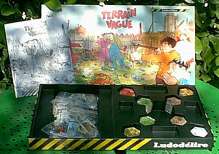 Terrain vague est amusant, mais les règles - qui ne sont pourtant pas très difficiles - sont trop longues et réservent de ce fait le jeu à un public averti. Le plan de jeu, différent à chaque partie, est composé d'hexagones difficiles à visualiser clairement. Une fois toutes ces difficultés surmontées, le jeu s'avère intéressant, et même amusant, ce qui n'est hélas pas le cas de tous les jeux qui prétendent l'être. Bref, c'est un jeu Ludodélire. |