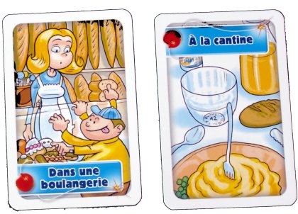 D'abord, d'un point de vue pratique, la bombinette est actionnée par 2 piles standards au lieu de la pile bouton, hors de prix, qui équipait la première version. Les tirelires apprécieront. Ensuite, les dessins des cartes sont trop trognons, avec souvent de petits traits d'humour que les parents goûteront. Le