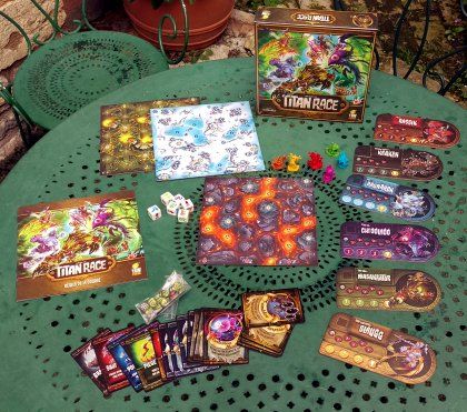Comme son nom l'indique, Titan Race est un jeu de course. Mais c'est surtout un jeu d'enfoirés et de baston. L'idée n'est pas vraiment de faire une subtile course tactique mais plutôt d'infliger des dégâts aux adversaires en se plaçant, si possible, hors de portée de ces derniers. Chaque titan a un pouvoir spécifique. On peut choisir sa figurine ou laisser le sort décider. Idéalement, il faudrait faire autant de manches que de joueurs en faisant tourner les figurines et leurs pouvoirs. La petite boîte, bien remplie, propose six figurines, des cartes, six dés et six pistes de course. On peut choisir l'une d'elles et ses effets spéciaux, ou composer une piste triple qui permettra de varier les effets. Titan Race vous est généralement proposé à moins de 20 €, ce qui en fait un des meilleurs rapports qualité/prix de nos épiceries ludiques. Bravo !