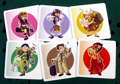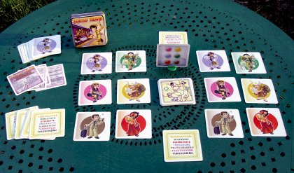 Tokyo Train rappelle évidemment Hystericoach du même auteur. Mais je le trouve à la fois plus simple, et plus abouti. On joue ici par équipe de deux. L'un des joueurs essaye de placer les voyageurs comme indiqué sur une carte d'objectif, en hurlant ses ordres à son coéquipier. Un ordre est composé d'un geste et d'un nom. Le nom est celui de l'un des deux voyageurs qui participe à la permutation, tandis que le geste indique quelle permutation il faut faire :
