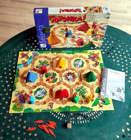 Dans la tribu des indiens Totonka, on adore jouer à Pique plume. Alors, on a imaginé une version grandeur nature ou les indiens se poursuivent pour se voler des plumes. Ici, la mémoire est remplacée par un peu de chance aux dés. Joli matériel mais règle du jeu un peu légère.