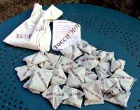 Car Touch'moi est composé de vingt-quatre sachets ou plus exactement douze paires de deux sachets renfermant des graines, des perles ou des noyaux très difficiles à discerner les uns des autres. Chaque sachet comporte un discret petit numéro cousu à l'envers, et qui permet d'identifier le contenu :