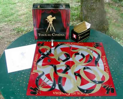 Sans cesse on se prend à dire : « C'est quoi, déjà, le nom de ce film ? Je ne connais que lui ! ». Et quand la réponse est enfin trouvée, on se retrouve tout bête de ne pas l'avoir dite. Comme je le disais en préambule, Tous au Cinéma est doté d'un astucieux système de comptage de points. Mieux vous répondez aux questions, et plus vite vous avancez. Et plus tôt vous arriverez à la dernière case, plus difficile sera l'épreuve finale. Un joueur très rapide devra réaliser un score de 25/25, tandis que le plus lent pourra se contenter de 11/25 ou 12/25. Si on ne parvient pas à faire le score demandé, on dispose à chaque nouveau tour d'un « oral de rattrapage » pour tenter d'améliorer sa note dans telle ou telle catégorie. Pendant ce temps-là, les joueurs moins érudits rejoignent la case finale, où ils pourront peut-être gagner puisque leur épreuve est plus facile ! Un jeu idéal à jouer entre amis, avant un film ou après, mais pas pendant… Note : le jeu est surtout distribué en vidéo-clubs en région parisienne, mais on peut le commander en ligne. Espérons qu'il soit bientôt disponible dans tous les cinémas et, pourquoi pas, dans les boutiques spécialisées. Cela permettra, espérons-le, d'en baisser le prix. |