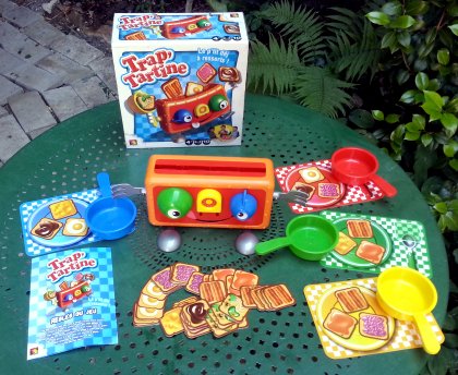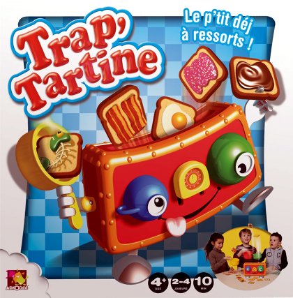 Destiné aux jeunes joueurs, Trap’Tartine risque d'amuser aussi leurs parents. Chacun doit composer son petit déjeuner. Et pour cela, il faut attraper au vol, et obligatoirement dans sa poêle, les tartines qui sortent du grille-pain, de une à quatre à la fois. Seulement, tout ce qui sort ne convient pas à tout le monde. Il faudra donc procéder à des échanges et surtout se défaire du poisson pourri si on l'a attrapé ! Le mécanisme est solide et fonctionne sans pile, ce qui est louable.