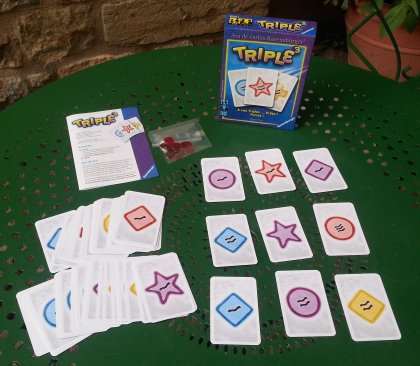 Lorsque je chroniquais Duo, en 2004, j'écrivais : « Il n'aurait pas fallu grand-chose pour imaginer une règle un peu plus intéressante avec le matériel fourni. » C'est maintenant chose faite. La règle de Triple 3 est nettement plus intéressante que celle de Duo. Les parties sont rapides et endiablées. parfois même un peu trop car un joueur retors ou distrait peut, dans le feu de l'action, parvenir à se débarrasser de cartes qui ne pourraient normalement pas être posées. À la différence de Set, il n'y a pas ici de temps mort, avec des joueurs plongés dans une intense réflexion. Les cartes se succèdent à toute vitesse, changeant continuellement la surface de jeu et donc les possibilités de pose. On est presque dans le jeu instinctif. À essayer, même si vous risquez, comme moi, de ne guère y briller. |