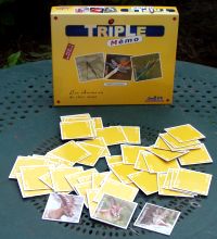 Toutes les photos sont de François Koch. Elles représentent trois fois un même animal familier. Les enfants doivent donc retrouver non les images qui se ressemblent, mais celles qui montrent le même animal. Une bonne idée : le jeu est livré avec 15 triplettes plus trois cartes vierges où l'enfant laisse aller son imagination, par exemple en dessinant son animal domestique. On peut y jouer selon la règle indiquée ou alors en utilisant la règle d'un jeu semblable : Trois par trois. |