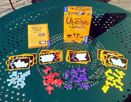 Ubongo Extrem, c'est pareil que Ubongo ou Ubongo mini, mais en remplaçant les polyomino Le cerveau humain est ainsi fait que, pour certains, c'est beaucoup plus difficile.