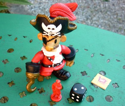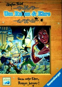 Um Ru(h)m & Ehre surprend un peu dans la collection Alea, qui nous avait habitués à des créations destinées aux joueurs chevronnés. Um Ru(h)m & Ehre est en effet plutôt orienté vers un public familial, avec une part non négligeable de hasard. Nous sommes des pirates qui cherchons l'honneur et la renommée. Pour gagner, il faut donc faire tout ce qu'on attend d'un honnête pirate : bagarre, chasse au trésor, rendez-vous galant, tournée au tripot, etc.