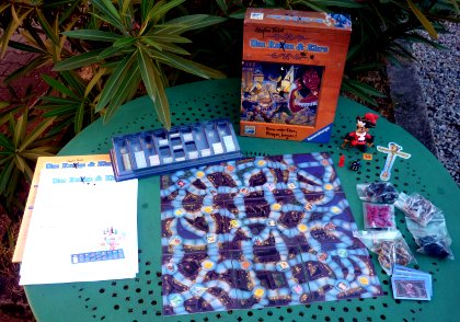 Um Ru(h)m & Ehre est constitué d'un plan de ville avec tous les bons coins où amasser de la renommée. Pour aller d'un point à un autre, il faut dépenser des compagnons. Plus on veut accomplir d'exploits, plus cela coûte. La difficulté, c'est qu'à la fin de son tour, il faut éviter de laisser une trop bonne situation au joueur suivant. La présentation est très agréable, avec un plan de jeu largement modulable puisque composé de neuf plaques qu'il est possible de poser dans tous les sens. Le matériel, prolifique, est essentiellement composé de tout petits bouts de carton. Heureusement, un distributeur permet de ranger tout cela correctement.