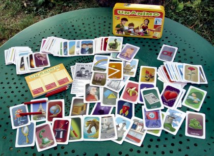 C'est donc dans une magnifique boîte métallique, l'image de marque de Cocktail Games, que le jeu nous revient. La première édition par Ravensburger souffrait de quelques imperfections. En particulier certaines images étaient trop chargées, et les joueurs avaient tendance à les décrire, au lieu de laisser leur esprit vagabonder sur le thème choisi. Pour la nouvelle édition, Cyril Saint Blancat a su créer des illustrations sobres mais évocatrices, qui ajoutent encore au plaisir du jeu. Unanimo chez Cocktail GamesTrouver rapidement des mots se rapportant à un thème, ça ne vous rappelle rien ?