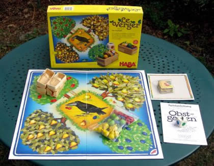 Un jeu coopératif, c'est un jeu où tous les joueurs sont alliés contre le jeu. Ici, les enfants doivent ramasser les fruits du verger avant que le corbeau ne les mange. La beauté du matériel, avec ses fruits et paniers en bois, donne immédiatement envie de jouer. Mais pour cela, il faut des partenaires de jeu, et c'est en ce sens que Le Verger participe fondamentalement à l'accroissement de la natalité dans le monde occidental. Vivement que je sois grand-père |