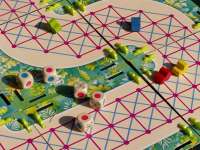 Le but du jeu est d'être le premier à réaliser un certain nombre de tours de circuit. Cinq dés portent deux faces bleues, deux faces rouges et deux faces marquées d'une croix. On jette trois dés, puis encore un ou deux si on le souhaite. Les croix sont mauvaises : elles ne permettent aucun déplacement. Les points rouges permettent de se déplacer le long d'une ligne rouge, aussi loin qu'on le souhaite, en ligne droite uniquement. Les points bleus de même, mais sur une ligne bleue. Plus on a de dés valides, plus les possibilités de déplacement sont importantes. Mais trois faces « Croix » font perdre son tour, et quatre font même perdre la partie !