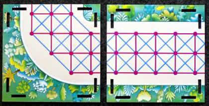 Douze cartons recto-verso permettent de réaliser toutes sortes de circuits. Il est conseillé d'alterner lignes droites et courbes.