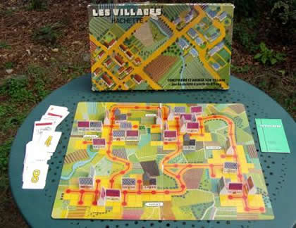 Les Villages est un des plus beaux jeux de ma collection, mais aussi un des plus kitsch ! L'idée est de marquer des points en construisant un village et en rendant des visites. Les cartes de points servent soit à se déplacer, soit à construire un bâtiment.