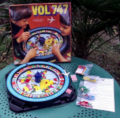 On ne peut qu'être impressionné par le matériel de Vol 747 ! Le plan de jeu reproduit quelques continents survolés par un avion. Lorsque l'avion atterrit sur un pays, le joueur auquel il appartient doit en nommer la capitale. Sinon… rien : aucune pénalité n'est prévue ! Au hasard des atterrissages, chacun va gagner peu à peu de l'argent. Lorsque