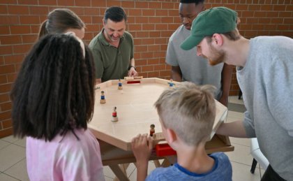 Weykick Arena est un peu plus large que WeyKick Stadion et il est possible d'y jouer à six, en deux équipes de trois joueurs, chacun contrôlant une figurine.