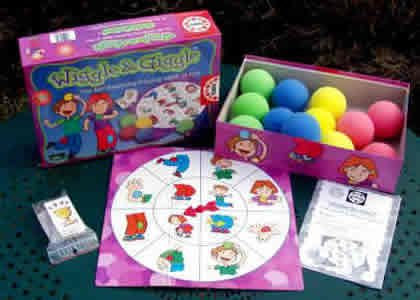 Wiggle & Giggle fait immanquablement penser à Eiertanz de Roberto Fraga. Dans les deux jeux, il s'agit en effet de coincer des objets sous les bras, sous le menton et à d'autres endroits incongrus.
