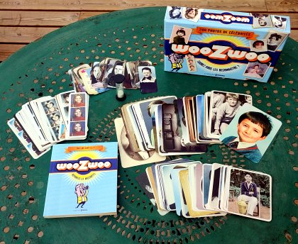 Qui c'est celui-là ? Woozwoo, ce sont 200 photos de jeunesse de personnalités de tous horizons : sport, sciences, politique, musique, cinéma, etc. qu'il s'agit de reconnaître. Au dos de chaque carte, 3 indices peuvent vous aider.