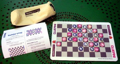 Wormi est en quelque sorte la version « adulte » de Querni. Il se joue d'ailleurs avec le même matériel. Le but du jeu est de former, avant l'adversaire, une chaîne continue avec ses seize pions. La mise en place diffère légèrement, puisque les deux adversaires jouent chacun sur une couleur de cases.