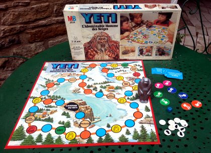 Quelle idée de pratiquer la randonnée dans une contrée hantée par le Yéti - L’Abominable Homme des neiges ! D'ailleurs, un seul survivra. Heureusement (ou pas), ce n'est pas le Yéti qui décide où le mènent ses pas, mais les joueurs autour de la table et aussi un peu le hasard. Tout l'attrait du jeu réside dans la figurine du Yéti. Celle-ci dissimule sous ses pieds dix pastilles qui sont déposées au fur et à mesure que la créature avance. Cinq d'entre elles portent des traces de pas. Si votre jeton se retrouve sous l'une d'elles, c'est bien dommage car il est écrasé et éliminé du jeu.